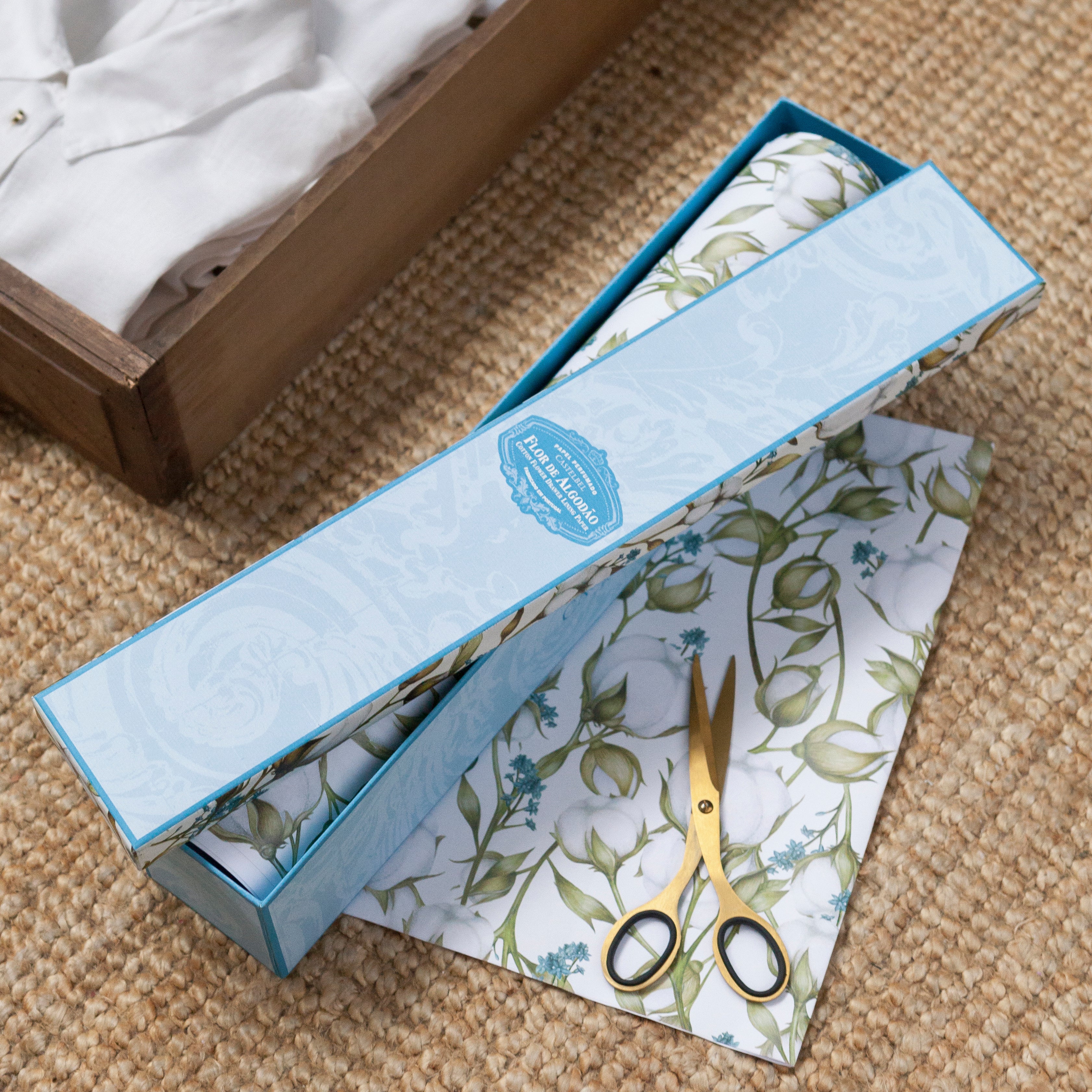 Richly illustrated with delicate cotton flower motifs, the Castelbel Cotton Flower Drawer Liner is crafted using a specialized technology that allows the fragrance to last longer. Both decorative and functional, it gently scents drawers and linens with a clean, pure Cotton Flower aroma.